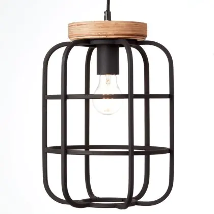 Brilliant Gwen Luce Pendente Metallo Legna Nero | 250mm - Adatto per 1x E27