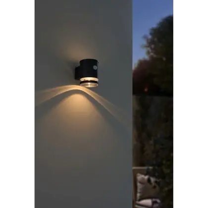 Descrizione D'Lite Solis Luce Da Parete Solar Nero Up & Down - 830 Luce Calda - | IP54 - Sensore Di Movimento