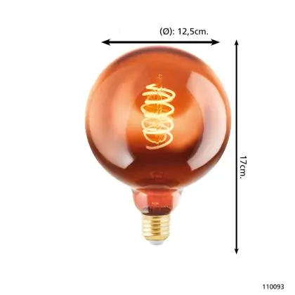 La Eglo LED Globe E27 Filamento Ambra 4W 30lm - 820 Bianco Molto Caldo | Dimmerabile - Sostitutiva 15W è la perfetta sostituzione per la tua lampada convenzionale 15W con attacco E27 grazie alla sua tecnologia LED. Passare a LED ti offrirà tanti vantaggi!