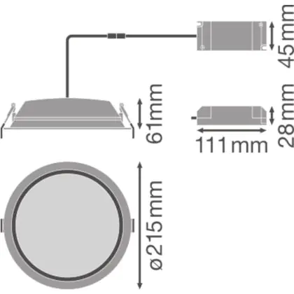 Descrizione Ledvance Downlight LED Alu DN200 35W 3150lm 100D - 865 Luce del Giorno | 215mm - IP44 - Dali Dimmerabile