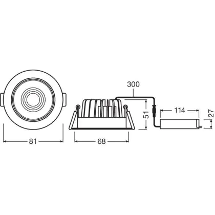 Descrizione Ledvance Downlight LED Incasso Argento 8W 670lm 36D - 840 Bianco Freddo | Ritaglio 68mm - Dimmerabile