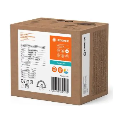 Descrizione Ledvance Faretti LED Faretti Combo Adjust Aluminium Bianca 6W 600lm 60D - 827-830-840 CCT | 82mm - Ritaglio 68mm - IP65 - Miglior Resa Cromatica