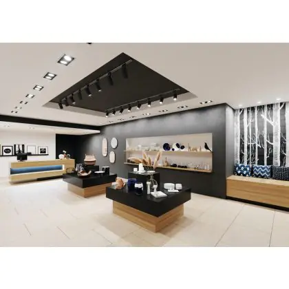 Un apparecchio con design inclinabile consente di dirigere l'illuminazione in modo specifico su un oggetto o una superficie. Ciò può rivestire un ruolo particolarmente importante nei negozi (mettendo in risalto una nuova collezione) o nelle gallerie (accentuando le opere d'arte). Può anche influenzare il comportamento di acquisto o l'interpretazione dei visitatori.