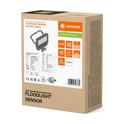 Descrizione Ledvance Proiettore LED Aluminium Bianca 8W 1200lm 100D - 840 Bianco Freddo | IP65 - Sensore Di Movimento E Luce - Simmetrico