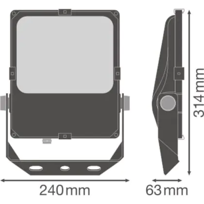La copertura ottica in vetro temperato permette una distribuzione luminosa uniforme. In pochi secondi dall’accensione questo proiettore LED Ledvance raggiunge la luminosità massima di 5800 lm. Il flusso luminoso emesso è asimmetrico (45° x 140°).