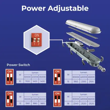 Descrizione Noxion Stagna LED Poseidon V3.0 10-18W 1300-2520lm - 830-865 CCT | 60cm - Cablaggio Entra/Esci (5x2.5mm2)