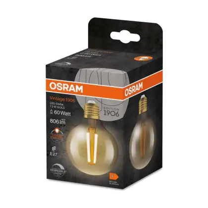 La Osram Vintage 1906 LED E27 Globe Filamento Oro 7.2W 806lm - 824 Bianco Molto Caldo | Sostitutiva 60W è la perfetta sostituzione per la tua lampada convenzionale 60W con attacco E27 grazie alla sua tecnologia LED. Passare a LED ti offrirà tanti vantaggi!