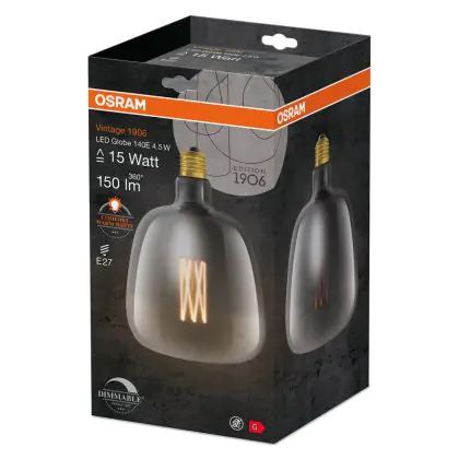 La Osram Vintage 1906 LED E27 Special Filament Smokey Clear 4.5W 150lm - 816 Extra Warm White | Dimmable è la perfetta sostituzione per la tua lampada convenzionale 15W con attacco E27 grazie alla sua tecnologia LED. Passare a LED ti offrirà tanti vantaggi!