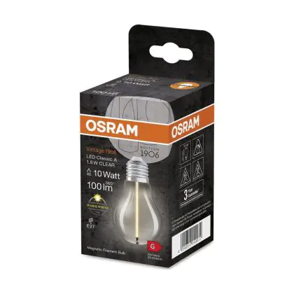 La Osram Vintage 1906 LED E27 Special Filamento Chiara 1.8W 100lm - 827 Bianco Molto Caldo | Sostitutiva 15W è la perfetta sostituzione per la tua lampada convenzionale 15W con attacco E27 grazie alla sua tecnologia LED. Passare a LED ti offrirà tanti vantaggi!