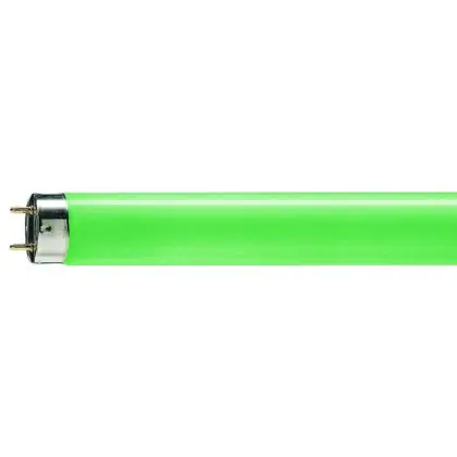 Questo tubo colorato Philips è lungo 150 cm, presenta un attacco G13 ed un diametro di 28 mm. Con un consumo di 58 W emette una luce verde brillante (6750 lm) a 360°.