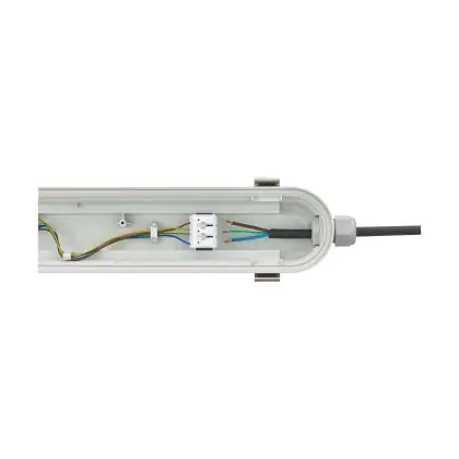 Questo apparecchio può essere usato sia in spazi interni che in spazi esterni, poiché ha indice di protezione contro l'ingresso di acqua e polvere IP65. In generale, un apparecchio con IP44 è resistente a schizzi di acqua e umidità, e può quindi essere installato in spazi esterni molto umidi o esterni riparati, come sono una tettoia. Un apparecchio che invece verrà esposto a intensi getti di acqua deve avere almeno IP54. Questa lampada ha anche un indice di resistenza a urti e impatti di IK08 - 5 Joule